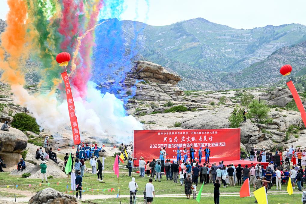 這是2025年5月24日拍攝的新疆阿勒泰市汗德尕特蒙古族鄉(xiāng)第六屆文化旅游活動(dòng)現(xiàn)場。新華社記者 王菲 攝