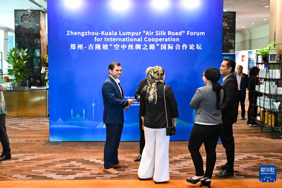 9月18日,馬來西亞吉隆坡國際機場舉行的鄭州-吉隆坡“空中絲綢之路”國際合作論壇開始前,嘉賓們在會場外交流。新華社記者 程一恒 攝