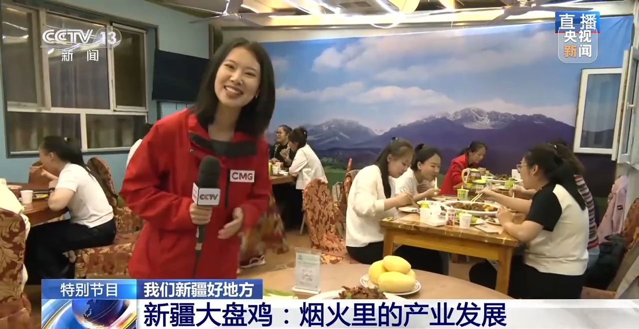 現場大家吃得津津有味,熱情好客的老板還跳起了新疆舞,有的食客也跟著跳起來了,氣氛很熱鬧。在這里,點上一盤大盤雞,我們嘗到的不只是美味,更是新疆農業發展的味道,是科技的力量、產業的力量,也是新疆各族人民勤勞智慧的結晶。