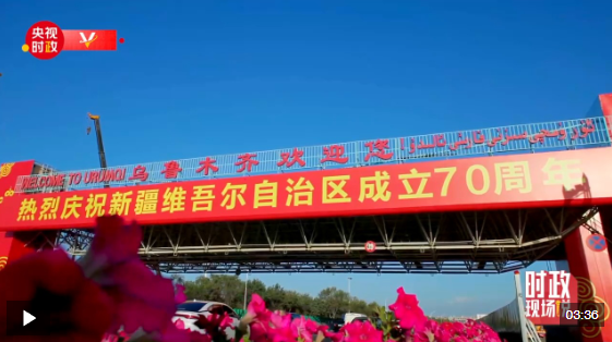 中共中央總書記、國家主席、中央軍委主席習近平率中央代表團23日下午乘專機抵達烏魯木齊,出席新疆維吾爾自治區成立70周年慶祝活動。14時20分許,習近平乘坐的專機在天山國際機場降落,等候在停機坪的新疆各族各界群眾熱烈歡呼。習近平走下舷梯時,少先隊員獻上鮮花。各族群眾代表身著民族服飾,載歌載舞,歡迎總書記的到來,表達對總書記的衷心祝福。