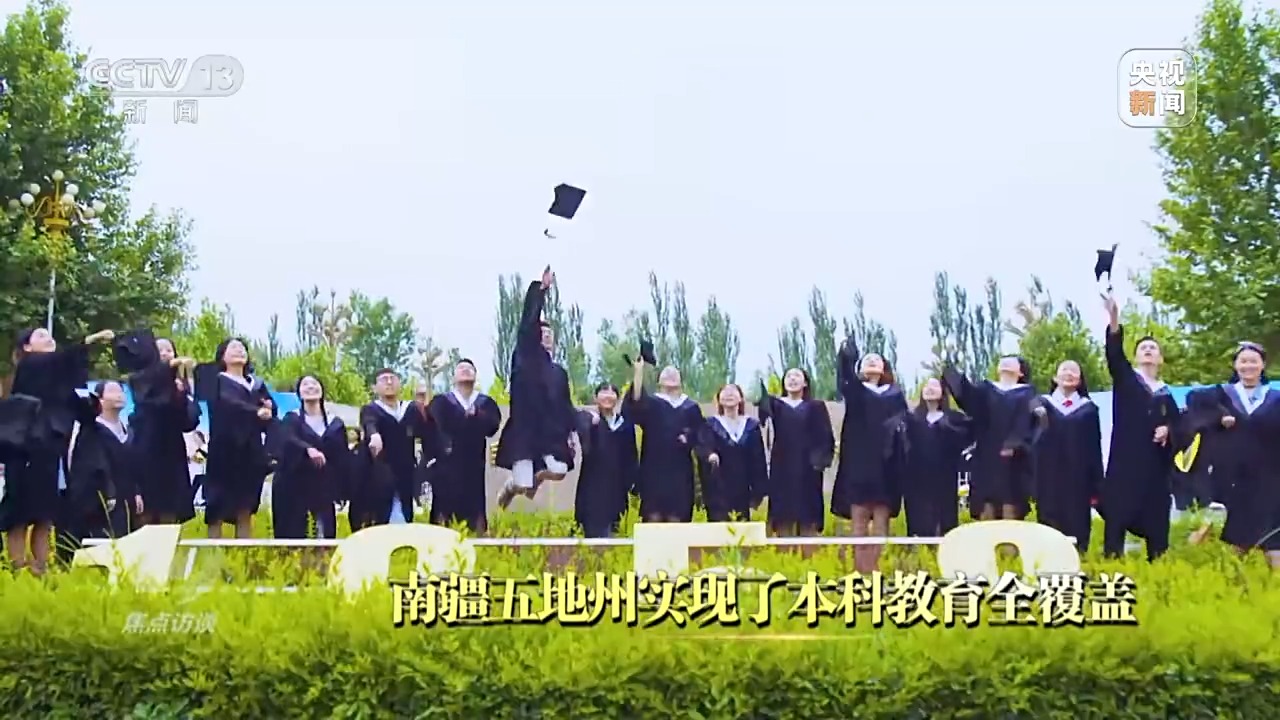 讓老百姓過上好日子是推動新疆發展的出發點和落腳點,新疆持續推進以就業、教育、醫療、住房等為重點的惠民工程。截至2024年,新疆就業人員總數從2012年的1246萬人增加至1391萬人,增長11.64%。各級各類醫療衛生機構超過1.9萬家,鄉鎮衛生院、村衛生室標準化率達到100%,人均預期壽命從1949年的30歲提高到77歲。如今,在新疆平均每106名幼兒就擁有1所幼兒園,每817名小學生就擁有1所小學,高中階段毛入學率達到97.74%。南疆五地州實現了本科教育全覆蓋。