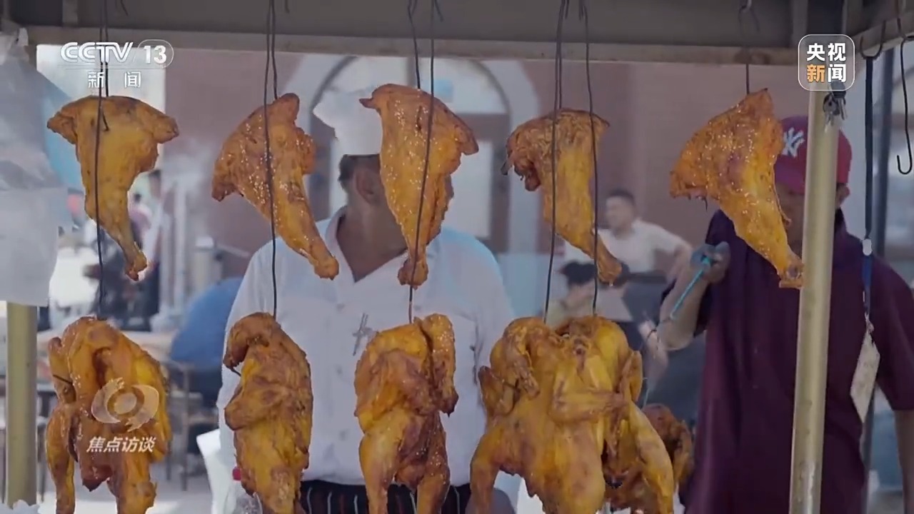 在新疆尉犁縣達西村,一年一度的羅布人民俗燒烤節上,各民族的村民用烤肉、烤魚等特色美食,招待從全國各地來的客人。