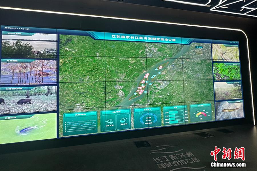 南京長江新濟洲國家濕地公園內(nèi)的智慧大屏。高萌 攝