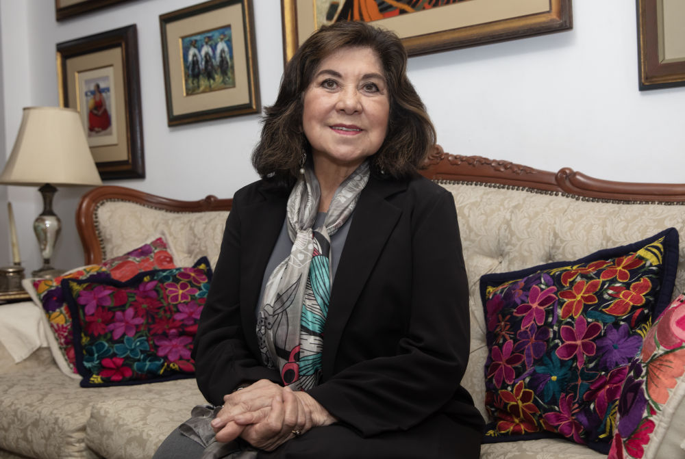 9月18日,秘魯前國會主席瑪爾塔·查韋斯在首都利馬接受新華社記者專訪。新華社發(瑪麗安娜·巴索攝)