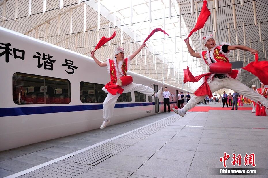 圖為2012年7月1日西安至延安動車組列車首發。唐振江 攝