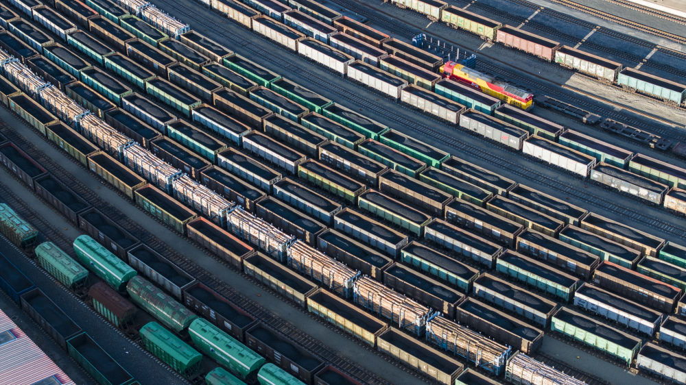 2025年10月18日,在中國(guó)鐵路哈爾濱局集團(tuán)有限公司綏芬河站南場(chǎng),滿載進(jìn)口貨物的列車等待解體換裝(無(wú)人機(jī)照片)。新華社發(fā)(曲藝偉 攝)