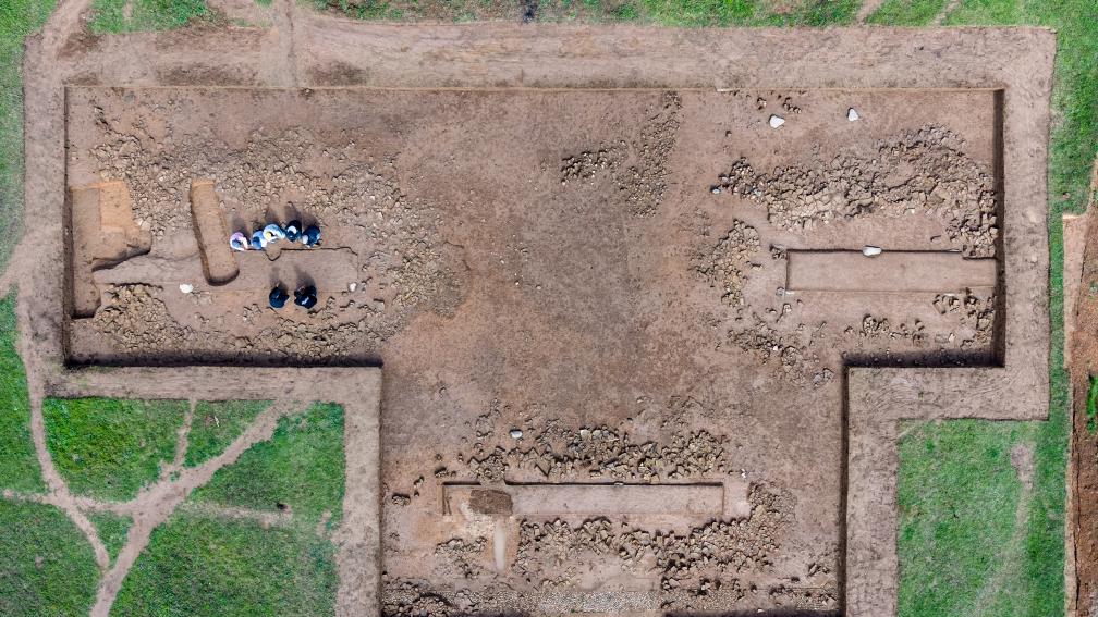 2024年夏季,考古工作人員在遺址西側(cè)第二與第三組門塾建筑之間,發(fā)現(xiàn)了一處由兩個(gè)對(duì)稱闕臺(tái)基址構(gòu)成的早期闕門遺跡。
