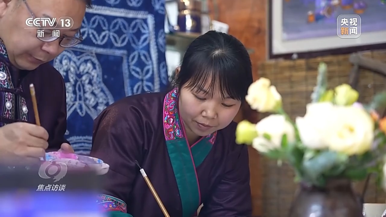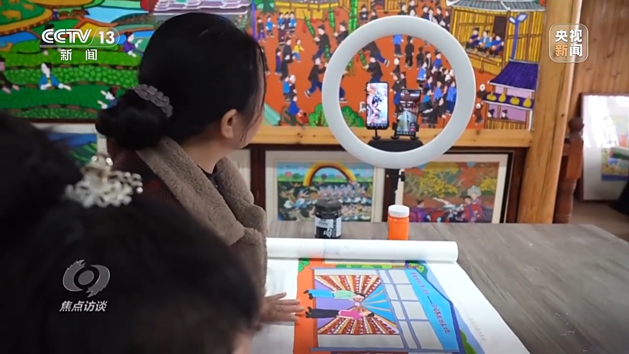 陳美美:我還記得我女兒一直問(wèn)我,媽媽天上是什么?我說(shuō)是飛機(jī)。你努力讀書(shū),我以后要跟著你一起去坐飛機(jī)。我沒(méi)想到我女兒還沒(méi)長(zhǎng)大,我就因?yàn)楫?huà)畫(huà)坐飛機(jī)去了北京。真的畫(huà)畫(huà)改變了我,也改變了我們家鄉(xiāng)。