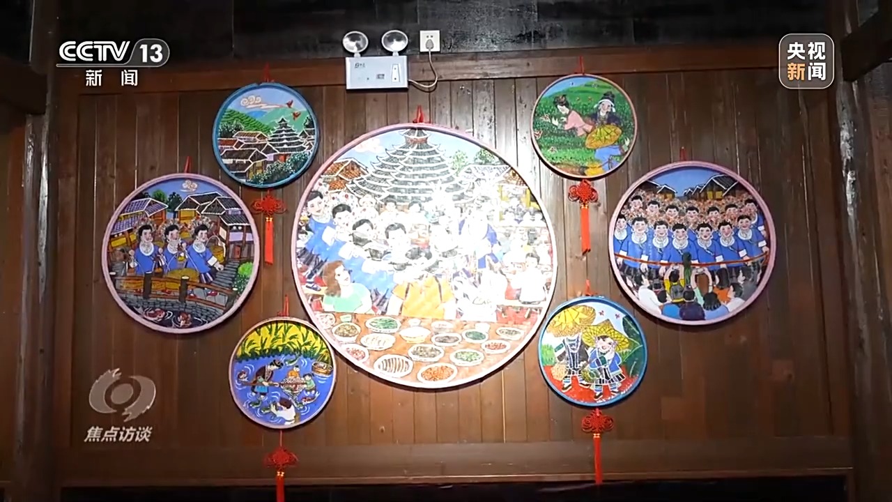 獨(dú)峒鎮(zhèn)是三江農(nóng)民畫(huà)的起源地,鎮(zhèn)上的一家侗畫(huà)博物館展示著三江農(nóng)民畫(huà)的發(fā)展與歷史,還在二樓搭建了創(chuàng)作平臺(tái)。過(guò)去,不少人有事沒(méi)事喜歡在附近聚在一起喝酒、打牌。如今,閑暇時(shí)候,不少附近的村民還會(huì)來(lái)這里聚集,但吸引他們的卻是繪畫(huà)、交流。在二樓平臺(tái),有人還搭起架子,做起繪畫(huà)的直播。
