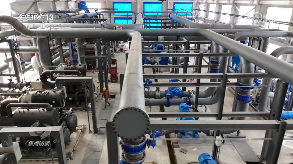 地熱能源站是整個清潔熱源項目的樞紐。地熱水從地下1500米抽上來,要先在地熱能源站提取熱量,再用這些熱量加熱自來水,然后把加熱好的水通過管道送到居民家實現供暖。往百姓家送水的出水口溫度高低,直接決定了居民家里暖不暖。