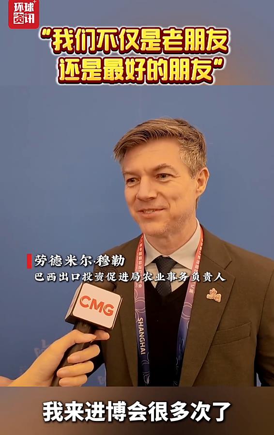 巴西出口投資促進局農業事務負責人勞德米爾·穆勒接受總臺環球資訊廣播記者采訪時表示,巴西每年都積極參與進博會,不僅是進博會的老朋友,更是最好的朋友。