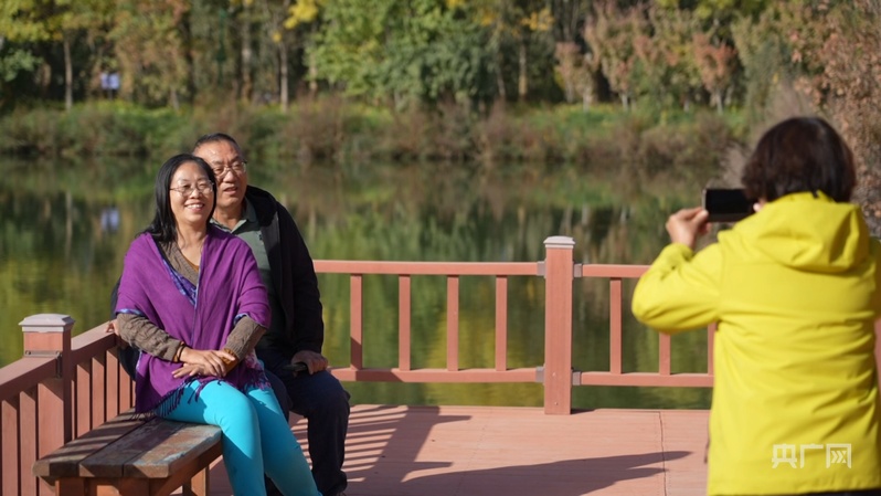 游客在濕地公園拍照留念 (央廣網記者丁安 攝)