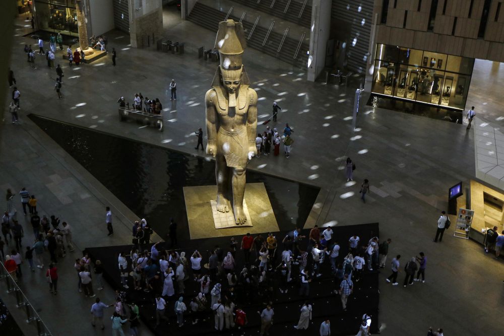 11月4日,大埃及博物館正式向公眾開放。這是古埃及法老拉美西斯二世巨像。新華社發(艾哈邁德·戈馬攝)