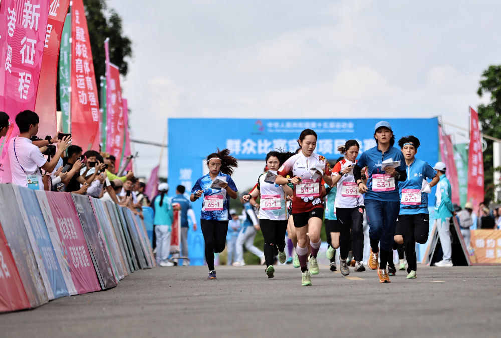 2025年5月8日,參賽選手在廣東云浮舉辦的第十五屆全國運(yùn)動(dòng)會(huì)群眾賽事女子定向接力賽中出發(fā)。新華社記者 黃國保 攝