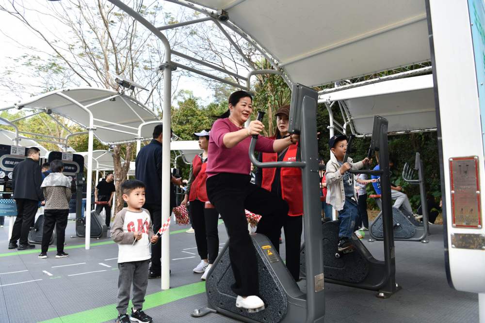 2024年1月20日,市民在深圳蓮花山公園西區(qū)室外智能健身房參加競賽活動(dòng)。新華社記者 梁旭攝