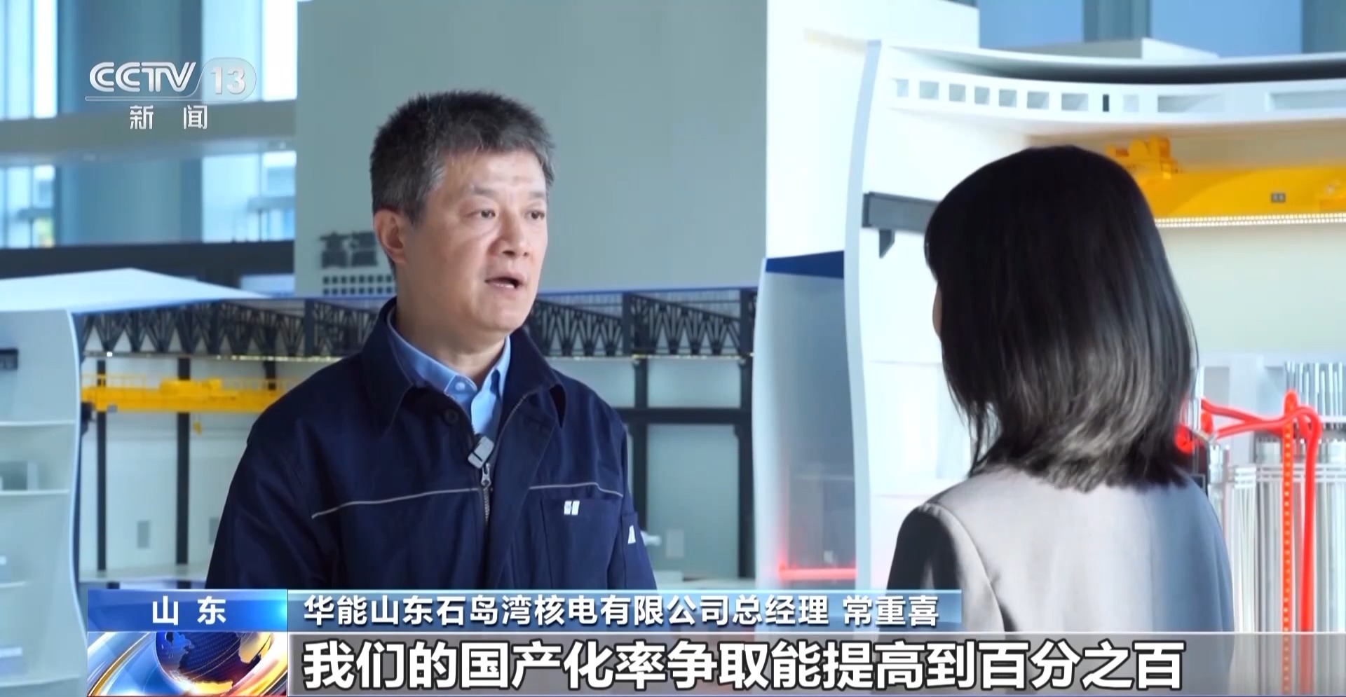 華能山東石島灣核電有限公司總經理 常重喜:在“十五五”期間,國產化率爭取能提高到百分之百,同時提升整體系統設備的可靠性。在保證機組安全穩定運行的同時,我們還會再做進一步的研究,讓大國重器發揮更大的效能和作用。