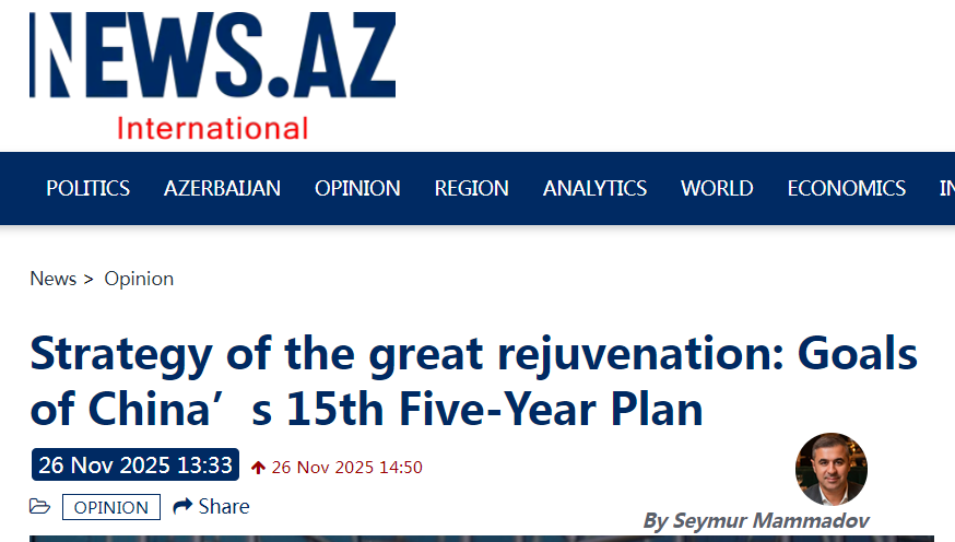 近日,國際專家俱樂部EurAsiaAz主任塞繆爾·馬邁多夫在阿塞拜疆“News.Az”國際新聞網發表文章稱,在全球進入“戰略不確定時代”的背景下,中國謀定而后動,以罕見的長遠戰略眼光和堅定的執行力,給出了截然不同的答案。