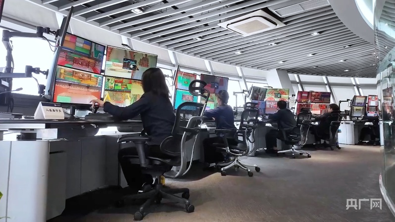操作員在遠程操控室操控作業(央廣網記者 馮麗 攝)