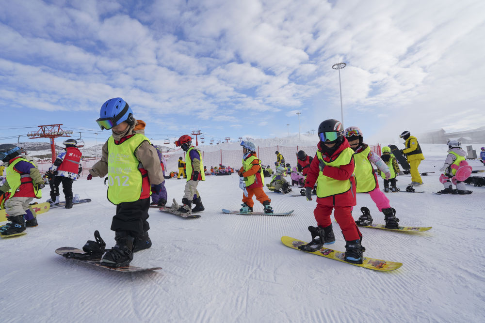 12月1日,學生在阿勒泰將軍山國際滑雪度假區練習單板滑雪。新華社記者 阿曼 攝