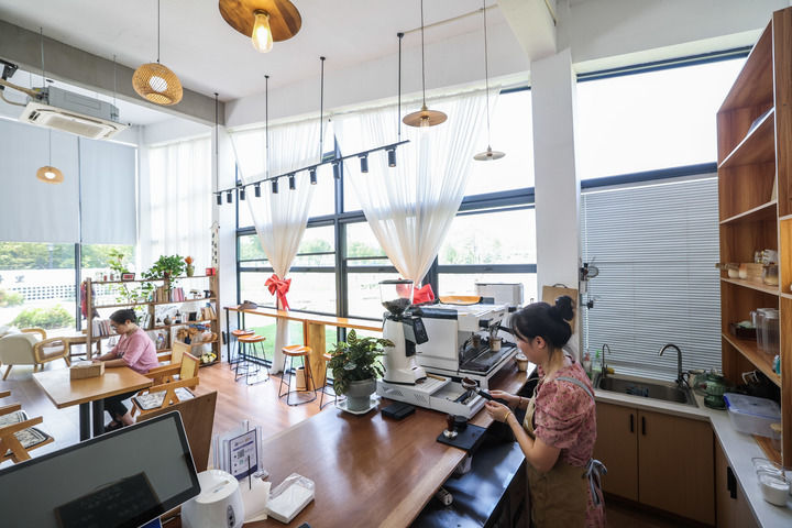 2025年8月27日在浙江省湖州市長興縣虹星橋鎮宋高村稻香伴日營地內拍攝的咖啡屋。這是宋高村做優全域土地整治后的農文旅新嘗試,集餐飲、旅游、農業和文化于一體。新華社記者 徐昱 攝