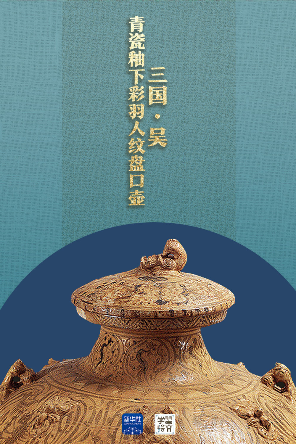 “這件藏于六朝博物館的青瓷釉下彩羽人紋盤口壺于1983年出土,精湛的釉下彩繪工藝,改變了人們對釉下彩工藝始于唐代的認識,把我國釉下彩繪工藝出現的時間提前了近五百年。”宋燕說。