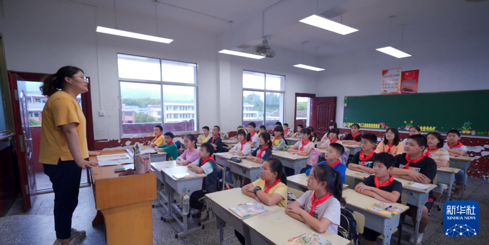 湖南第一師范畢業生秦葉仁在給湖南省寧鄉市龍田鎮的孩子們上課。(資料照片)