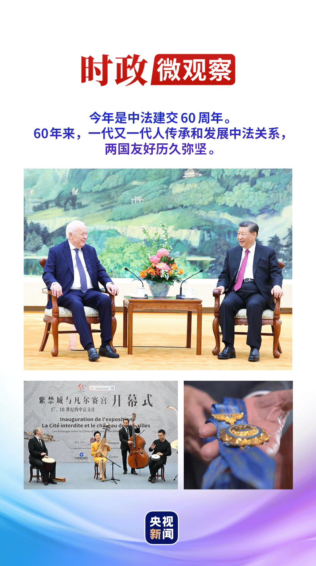 今年4月8日,再次會見中國人民這位老朋友,習近平主席撫今追昔:“60年來,一代又一代人傳承和發展中法關系,兩國友好歷久彌堅。中方珍視中法友誼,愿同法方進一步加強高層交往,密切交流合作,推動中法關系邁上更高水平。”