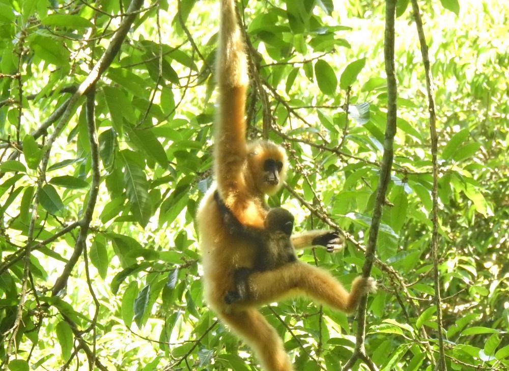 海南長(zhǎng)臂猿是海南特有的靈長(zhǎng)類(lèi)動(dòng)物,也是海南熱帶雨林生態(tài)系統(tǒng)完整性和原真性的指示物種,目前只分布在海南熱帶雨林國(guó)家公園霸王嶺片區(qū)。漫步林間,“猿啼”“鳥(niǎo)鳴”入耳,巨大板根、獨(dú)木成林、“空中花園”、植物“絞殺”現(xiàn)象,滿目都是奇特景觀。