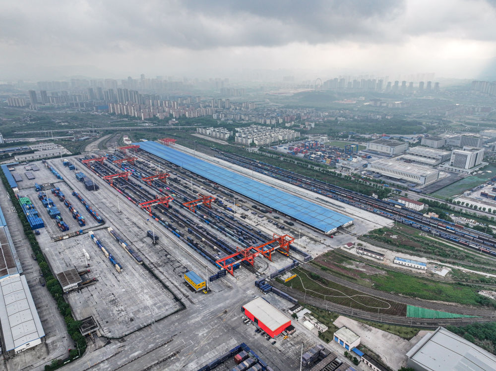 自重慶國際物流樞紐園區向北,一列列滿載貨物的中歐班列經新疆霍爾果斯口岸出境,聯結起區域開放發展之路。