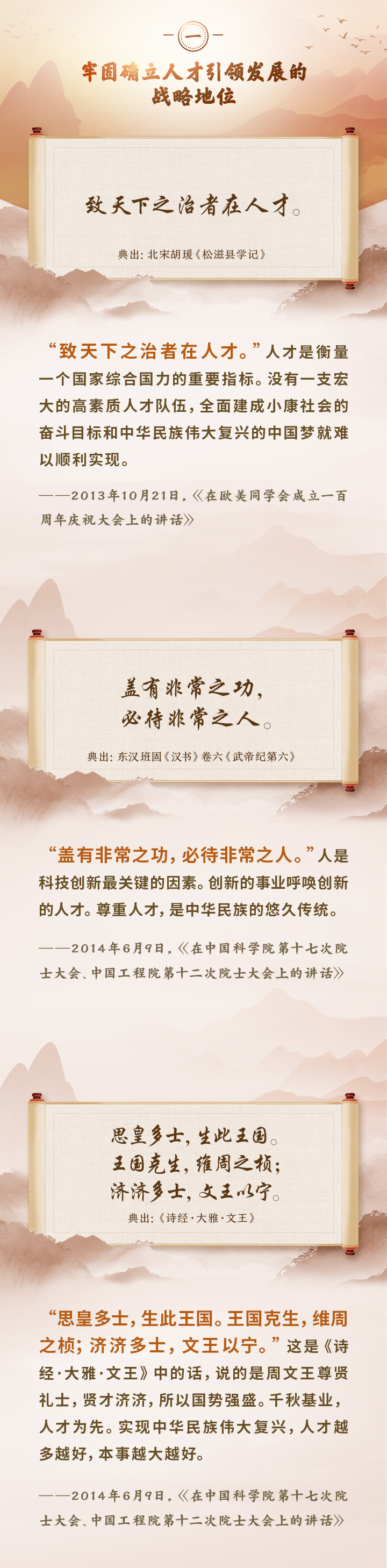 編者按:培養造就大批德才兼備的高素質人才,是國家和民族長遠發展大計。黨的十八大以來,習近平總書記圍繞人才工作發表一系列重要論述,立意高遠,內涵豐富,思想深刻,深刻回答了為什么建設人才強國、什么是人才強國、怎樣建設人才強國的重大理論和實踐問題。在這些重要論述中,總書記精妙運用古代典籍、經典名句,以古喻今、啟迪思想、激蕩精神,讓我們一起來學習!