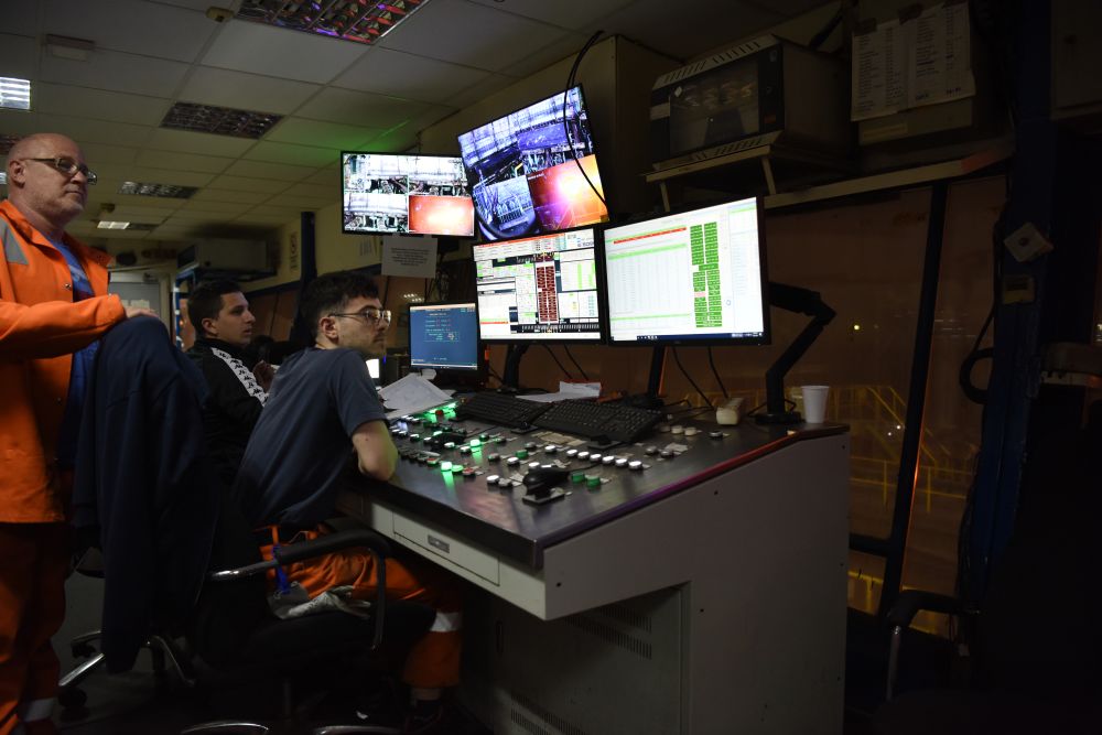 技術人員在斯梅戴雷沃鋼廠控制室里監控生產過程。