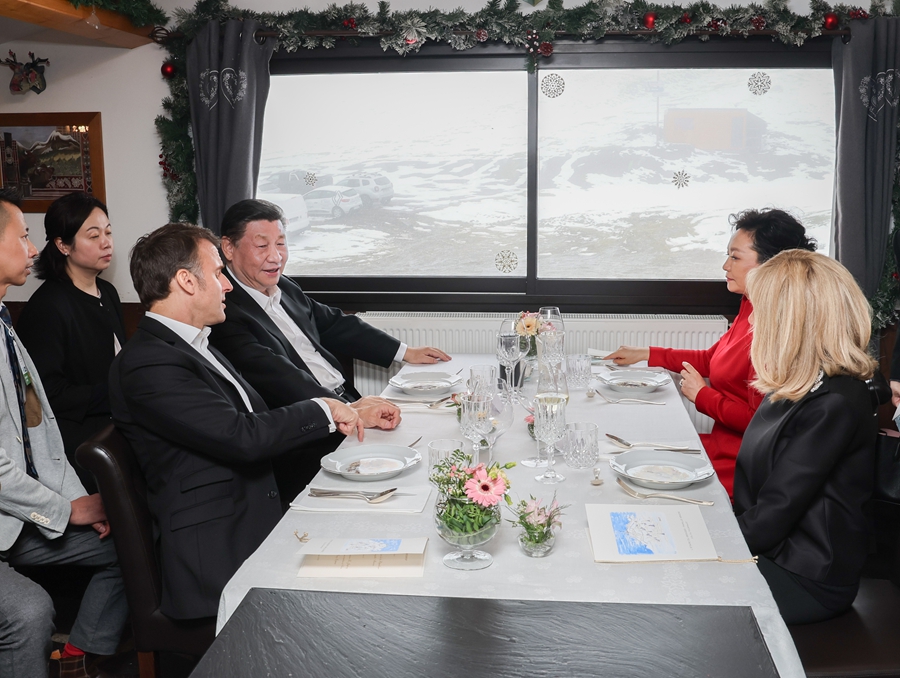 當?shù)貢r間5月7日,應法國總統(tǒng)馬克龍?zhí)貏e邀請,國家主席習近平乘專機來到法國西南部上比利牛斯省訪問。在圖爾馬萊山口“牧羊人驛站”,習近平和夫人彭麗媛同馬克龍和夫人布麗吉特憑窗而坐,在輕松愉快的氛圍中就一些重要問題進行戰(zhàn)略溝通。新華社記者 姚大偉 攝