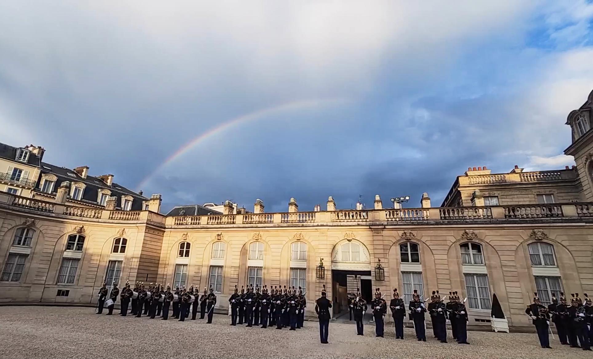 當地時間5月6日晚,習近平主席在巴黎出席馬克龍總統舉行的盛大歡迎宴會。宴會前,愛麗舍宮上空出現彩虹。彩虹連接著東西方。塞納河畔,正寫下中法兩國“雙向奔赴”的新故事。