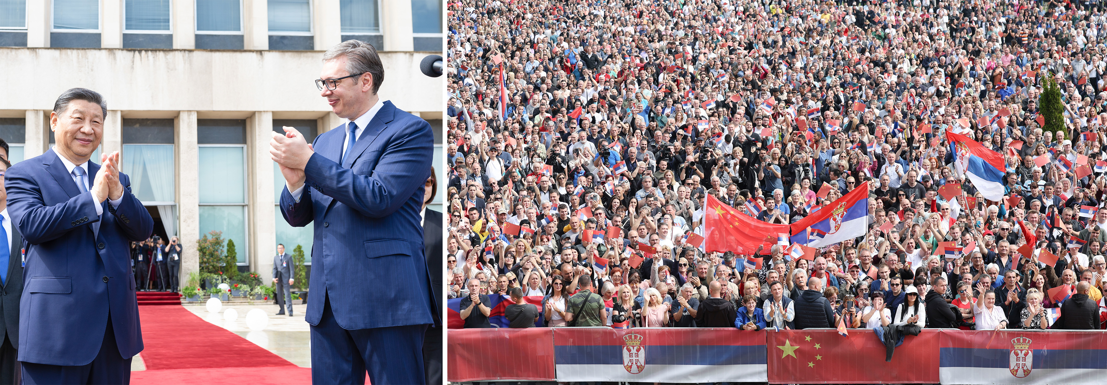 近2萬名當地民眾齊聚塞爾維亞大廈廣場,揮舞中塞兩國國旗,齊聲呼喊兩國國名,歡迎中國元首來訪。“我為那個場面所震撼,也深受感動。”習主席感嘆。