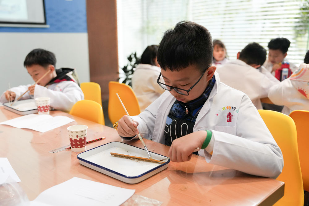 2024年3月16日,孩子們在長沙簡牘博物館參與社會教育活動“探秘簡牘的清洗與保護”。湖南是簡牘出土大省,長沙簡牘博物館推出了系列展陳、社會教育活動等,讓觀眾能走近這跨越千年的“百科全書”。