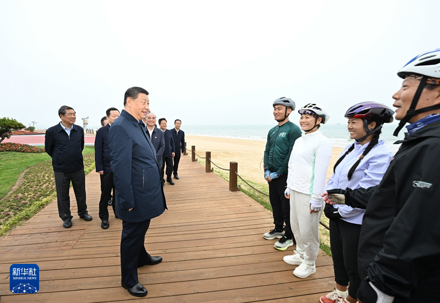 5月22日至24日,中共中央總書記、國家主席、中央軍委主席習近平在山東考察。這是22日下午,習近平在日照市陽光海岸綠道同市民親切交流。新華社記者 謝環馳 攝