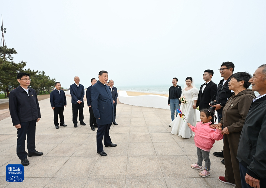 5月22日至24日,中共中央總書記、國家主席、中央軍委主席習近平在山東考察。這是22日下午,習近平在日照市陽光海岸綠道同市民和游客親切交流。新華社記者 謝環馳 攝