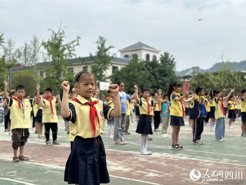 5月31日,南充市嘉陵區之江小學,學生們正在進行課間操活動。人民網記者 王波攝
