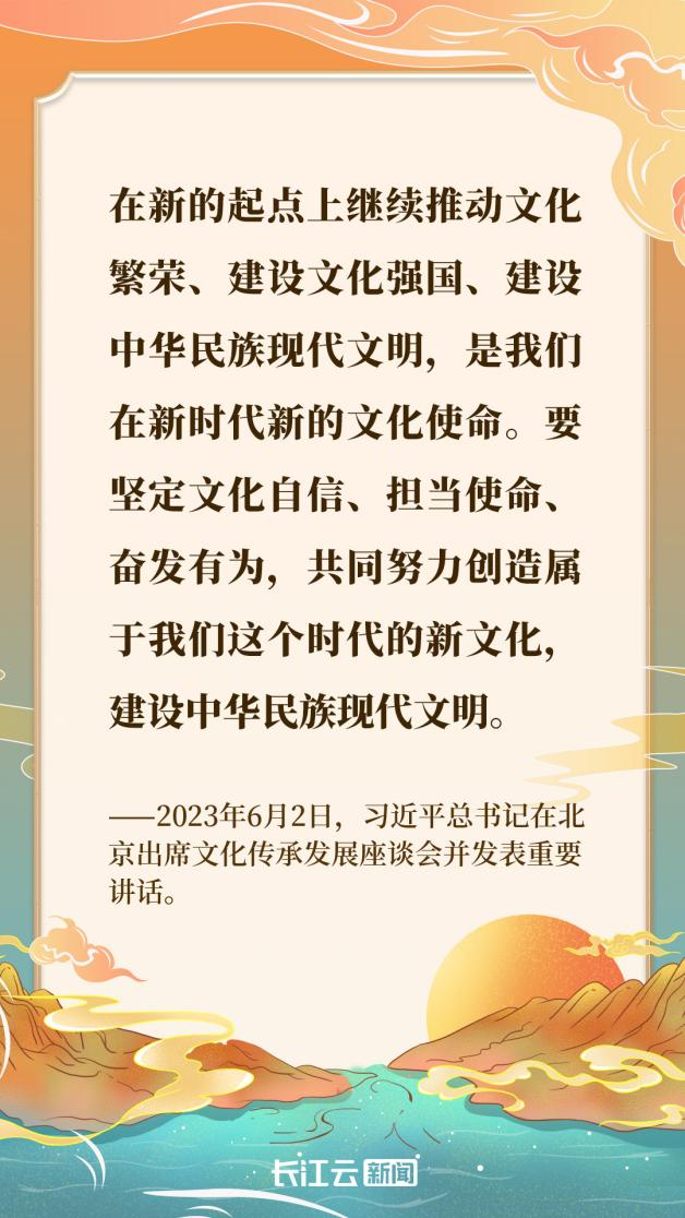 2023年6月2日,文化傳承發展座談會在北京召開,習近平總書記發表重要講話,從黨和國家事業發展全局戰略高度,對中華文化傳承發展的一系列重大理論和現實問題作了全面系統深入闡述,為在全面建設社會主義現代化國家新征程上推進文化傳承發展事業指明了前進方向、提供了根本遵循。