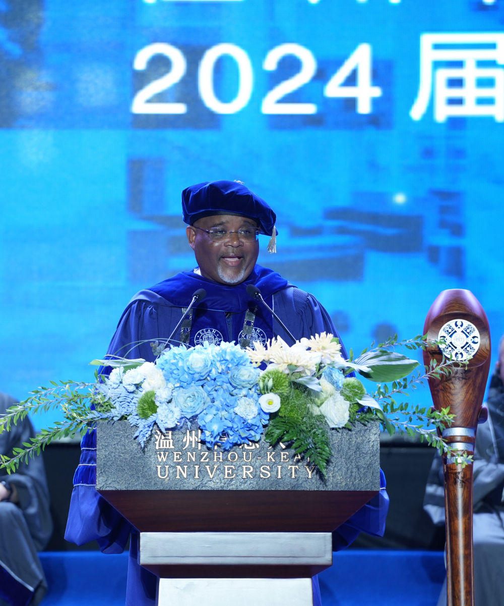 6月7日,美國肯恩大學校長拉蒙·雷波列特在溫州肯恩大學畢業典禮上致辭。(受訪者供圖)