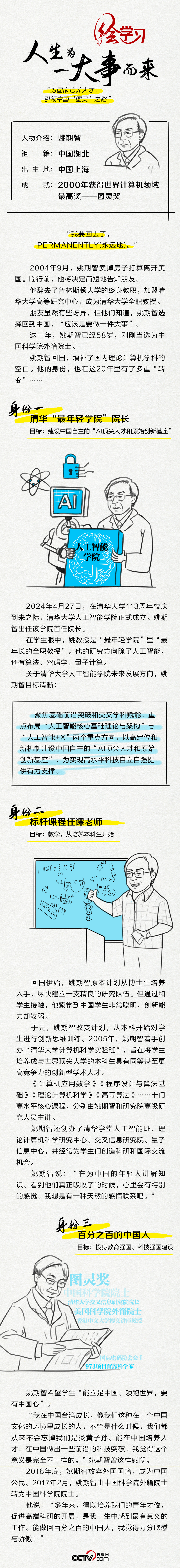 作為一名計(jì)算機(jī)科學(xué)專(zhuān)家,姚期智是圖靈獎(jiǎng)創(chuàng)立以來(lái)首位亞裔獲獎(jiǎng)?wù)?,也是世界現(xiàn)代密碼學(xué)基礎(chǔ)的奠基人之一。2004年,姚期智辭去美國(guó)普林斯頓大學(xué)終身教職,回國(guó)到清華大學(xué)全職任教。他曾說(shuō),“人生為一大事而來(lái)”。這件大事,就是“為國(guó)家培養(yǎng)人才,引領(lǐng)中國(guó)‘圖靈’之路”。央視網(wǎng)《天天學(xué)習(xí)》欄目推出手繪長(zhǎng)圖,為您講述姚期智將愛(ài)國(guó)之情化為報(bào)國(guó)之行的奮斗故事。