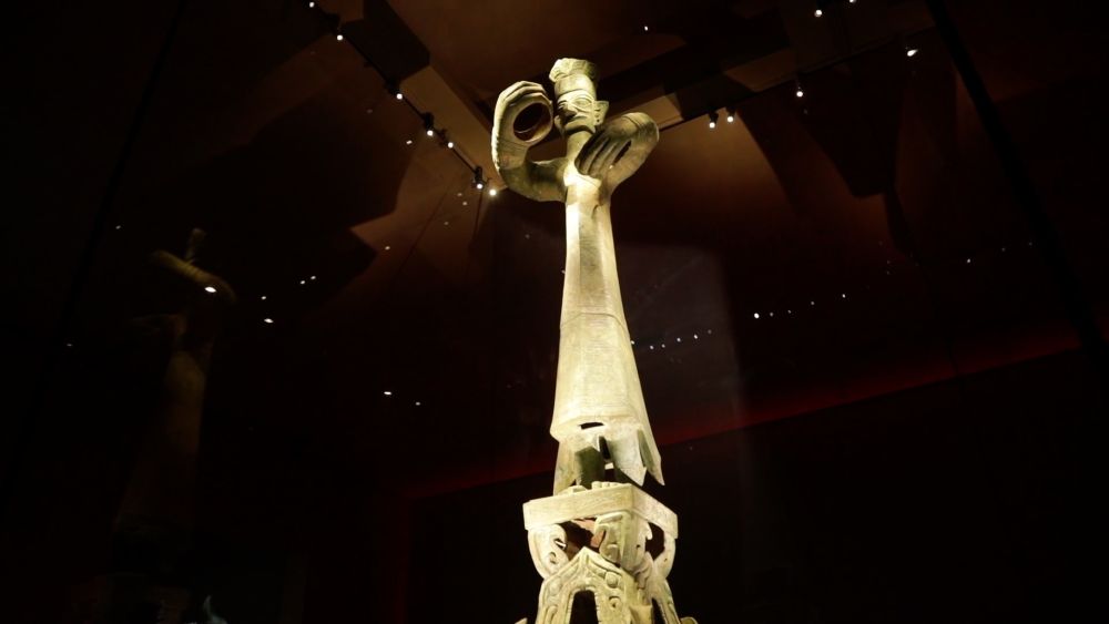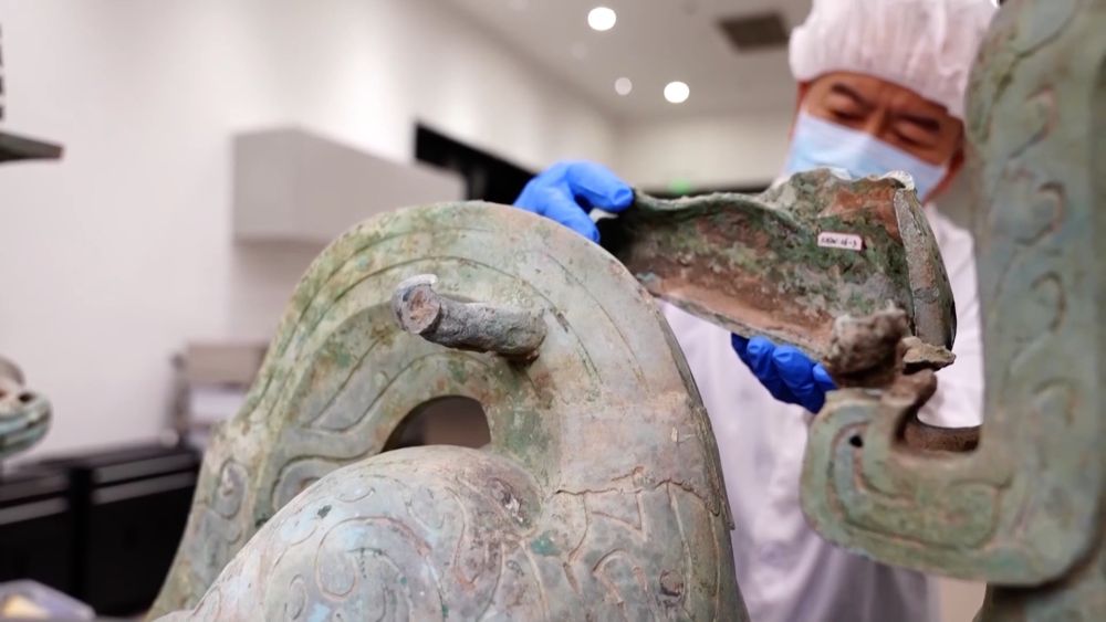 在一代一代考古工作者的手中,通天神樹、青銅縱目面具、青銅鳥足神像……這些昔日蒙塵的器物恢復了原本的熠熠光彩。隨著三星堆博物館新館建成投用,文化與科技在這里充分融合。