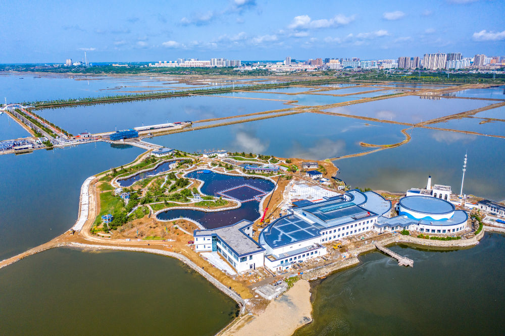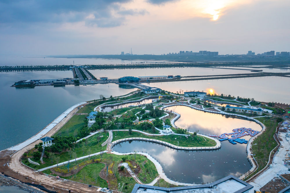 2024年4月14日拍攝的運城鹽湖全面提升改造項目現場(無人機照片)。該項目是運城鹽湖生態治理及基礎設施配套工程,旨在打造集吃、住、行、游、購、娛于一體的精品旅游度假綜合體,助推文旅產業轉型升級和融合發展。