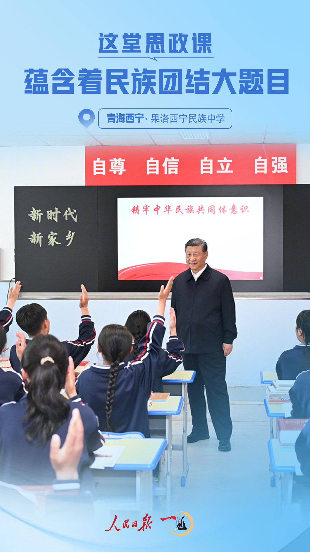 西寧城北,元朔山麓,藍天白云掩映下的果洛西寧民族中學綠意蔥蘢。6月18日,正在青海省西寧市考察的習近平總書記來到這里并觀摩了一堂思政課。總書記對思政課歷來很重視——這是落實立德樹人根本任務的關鍵課程,是培養社會主義建設者和接班人的重要保障。