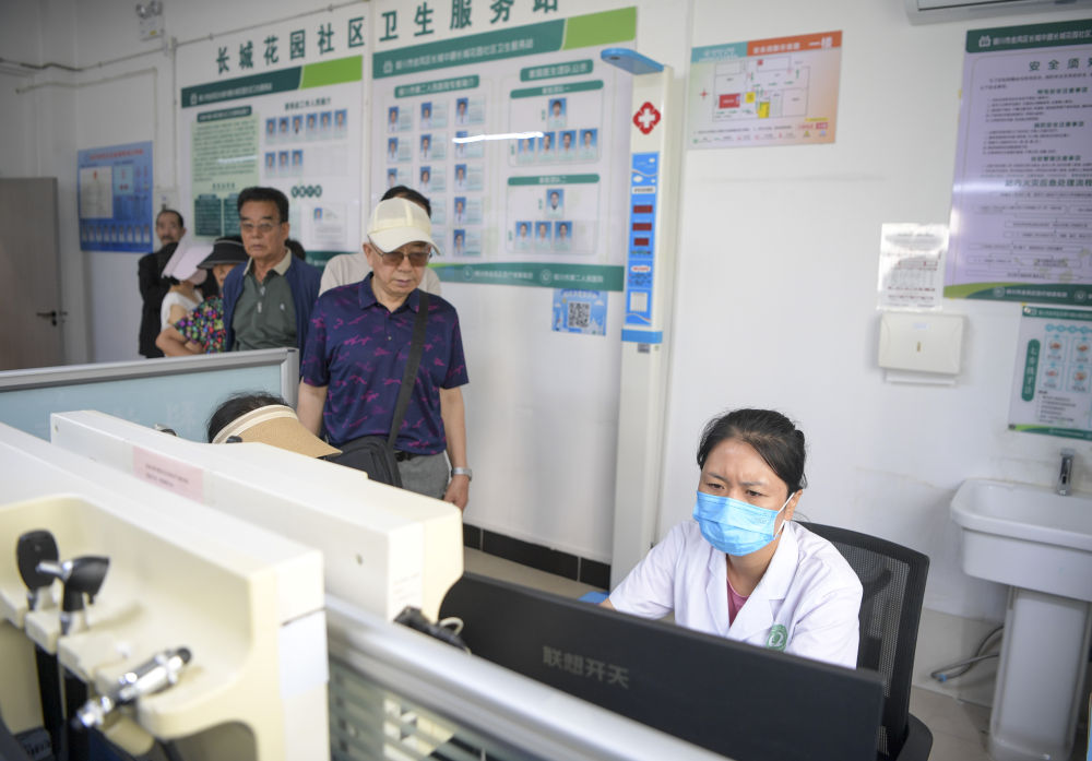 6月20日,長城花園社區衛生站的工作人員為居民登記醫療信息。