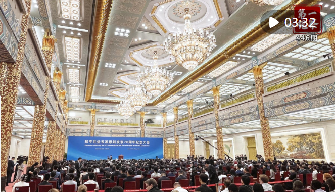 6月28日上午,和平共處五項原則發表70周年紀念大會在北京人民大會堂金色大廳隆重舉行。國家主席習近平出席紀念大會,并發表題為《弘揚和平共處五項原則,攜手構建人類命運共同體》的重要講話。