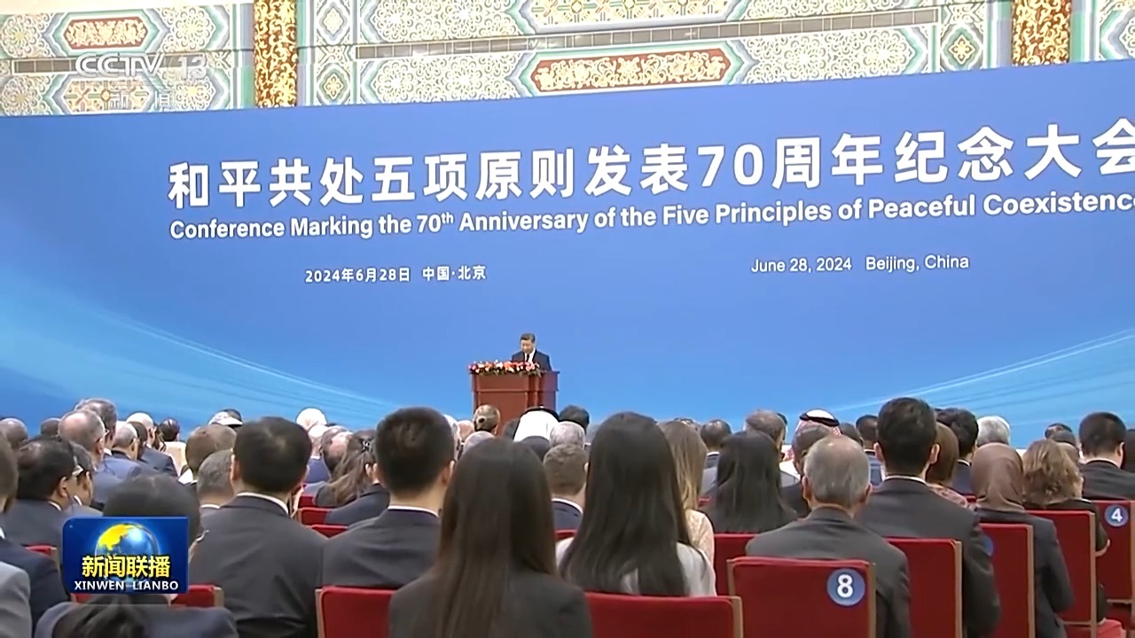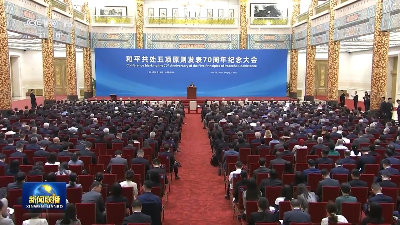 6月28日,國家主席習近平出席和平共處五項原則發表70周年紀念大會,并發表題為《弘揚和平共處五項原則,攜手構建人類命運共同體》的重要講話。習近平主席在講話中全面闡釋和平共處五項原則的精神內涵和時代價值,在世界百年未有之大變局中指明構建人類命運共同體的前進方向,發出“全球南方”同世界各國人民共創美好未來的時代強音。與會國內外人士表示,習近平主席的重要講話飽含著對歷史的深邃思考、對現實的深刻分析、對未來的長遠謀劃,必將對推動各國同心協力建設更加美好世界產生重大而深遠的影響。