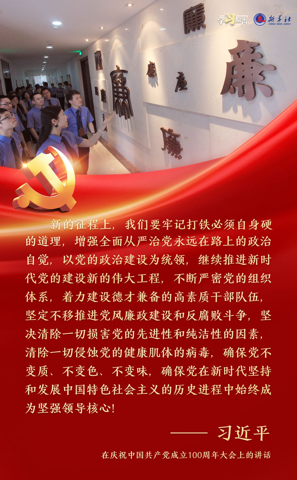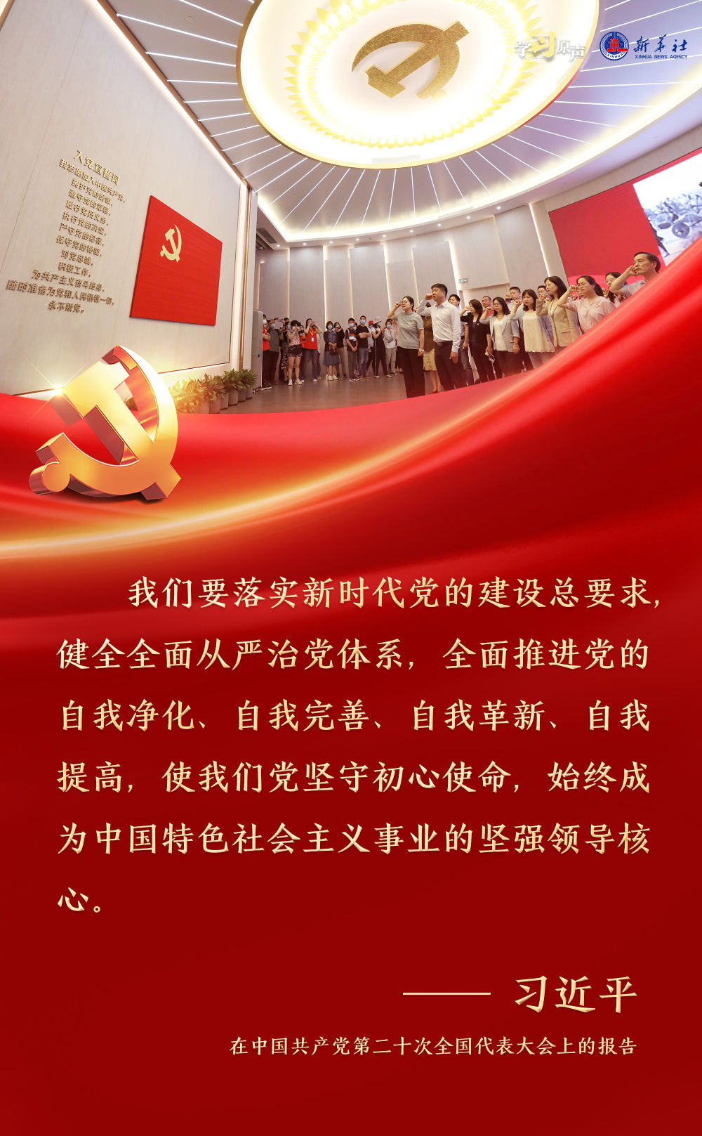 習(xí)近平總書記強(qiáng)調(diào),面對(duì)新征程上的新挑戰(zhàn)新考驗(yàn),我們必須高度警省,永遠(yuǎn)保持趕考的清醒和謹(jǐn)慎,馳而不息推進(jìn)全面從嚴(yán)治黨,使百年大黨在自我革命中不斷煥發(fā)蓬勃生機(jī),始終成為中國(guó)人民最可靠、最堅(jiān)強(qiáng)的主心骨。