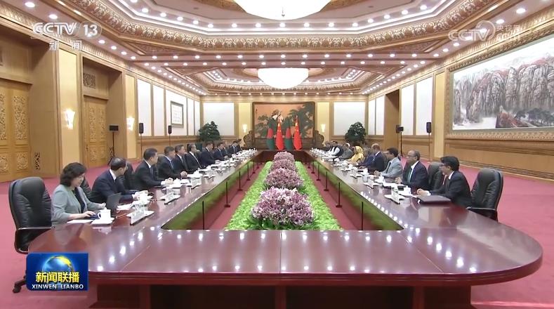習近平指出,中國和孟加拉國是相知相交的友好近鄰,兩國友好往來綿延千年。建交以來,兩國始終相互尊重、相互支持,平等相待、合作共贏,樹立了國與國之間尤其是“全球南方”國家間友好交往、互利合作的典范。中方珍惜中孟兩國老一輩領導人締造的深厚友誼,愿以明年建交50周年為契機,深化高質量共建“一帶一路”,拓展各領域合作深度和廣度,推動中孟全面戰略合作伙伴關系行穩致遠。
