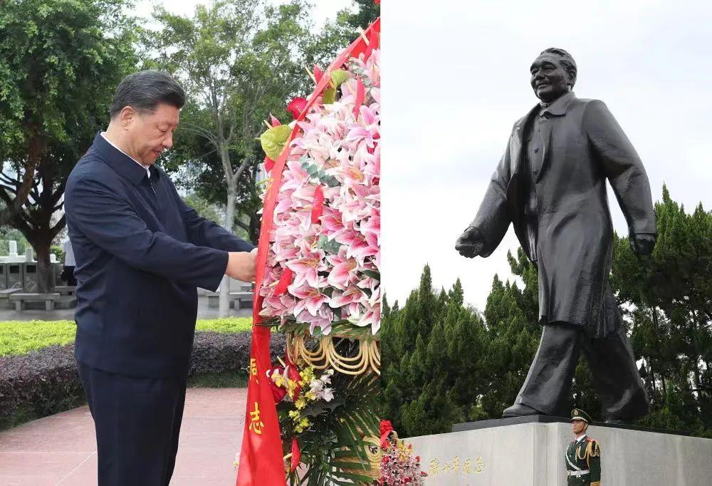 △2020年10月14日,深圳經濟特區建立40周年慶祝大會在廣東深圳市隆重舉行,習近平總書記在會上發表重要講話。這是當天下午,總書記來到蓮花山公園,向鄧小平同志銅像敬獻花籃。